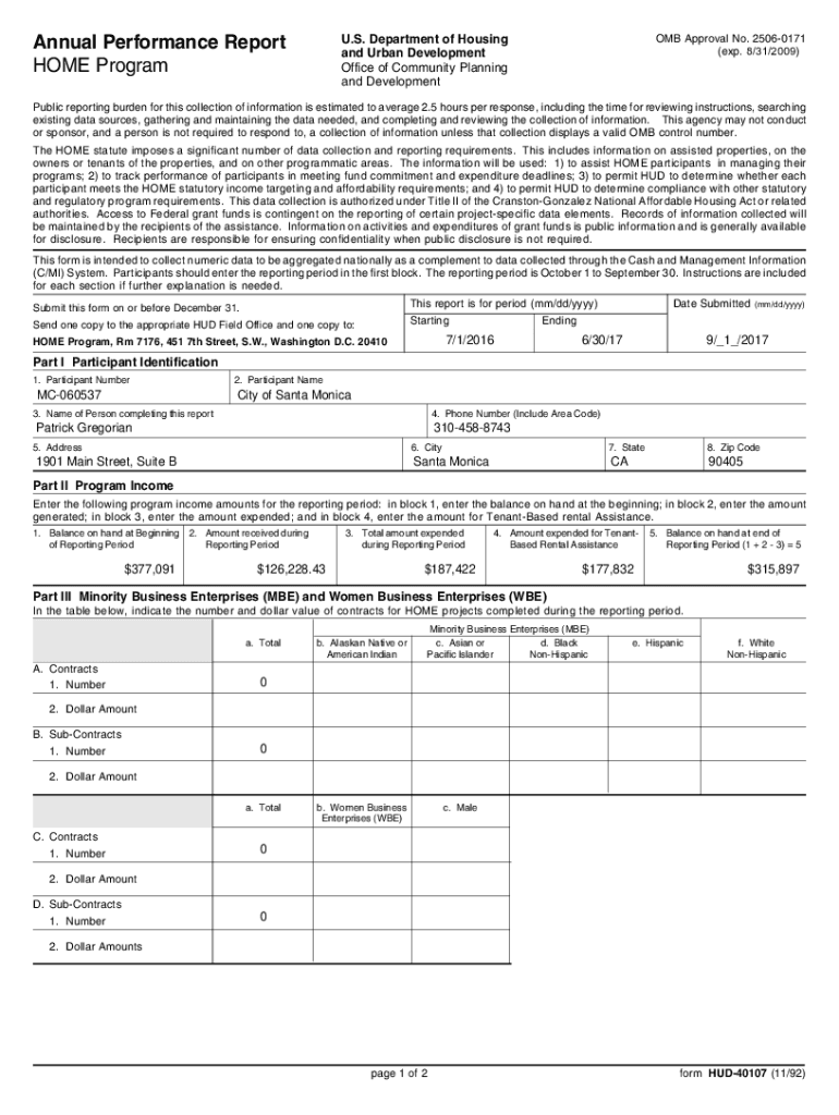 City of Santa Monica FY 201617: Consolidated Annual Performance and Evaluation Report For CBG and HOME funds received through the U.S. Department of Housing and Urban Development September 2017CITY