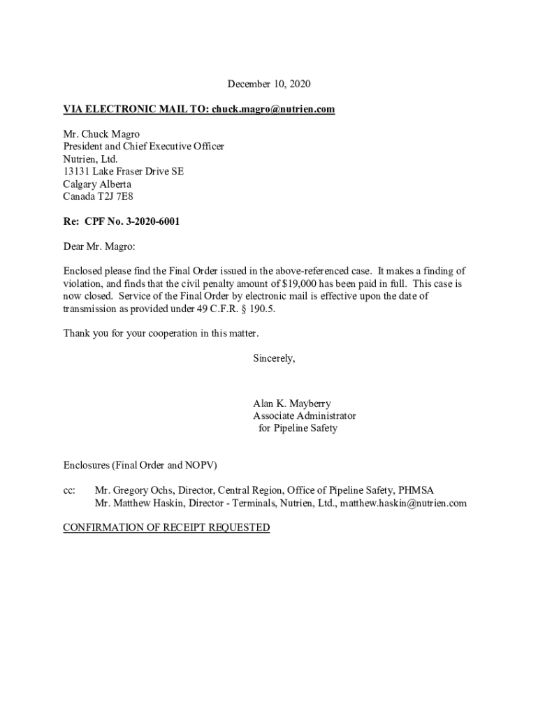 December 10, 2020, VIA ELECTRONIC MAIL TO: chuck. Macro×nutrien.com Mr. Chuck Macro President and Chief Executive Officer Nutrient, Ltd. 13131 Lake Fraser Drive SE Calgary Alberta Canada T2J 7E8