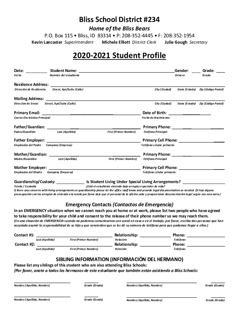 Bliss School District #234 Home of the Bliss Bears P.O. Box 115 Bliss, ID 83314 P: 2083524445 F: 2083521954 Kevin Lancaster Superintendent Michele Elliott District Clerk Julie Golf Secretary20202021