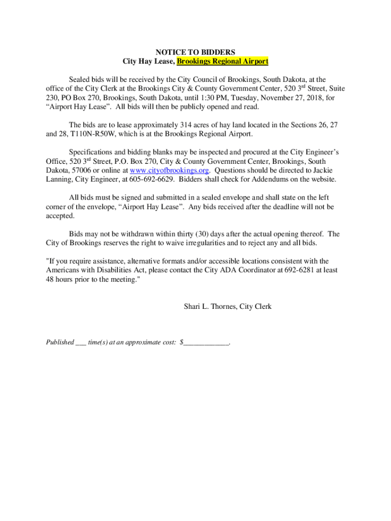 Get the free NOTICE TO BIDDERS City Hay Lease, Brookings Regional Airport ...