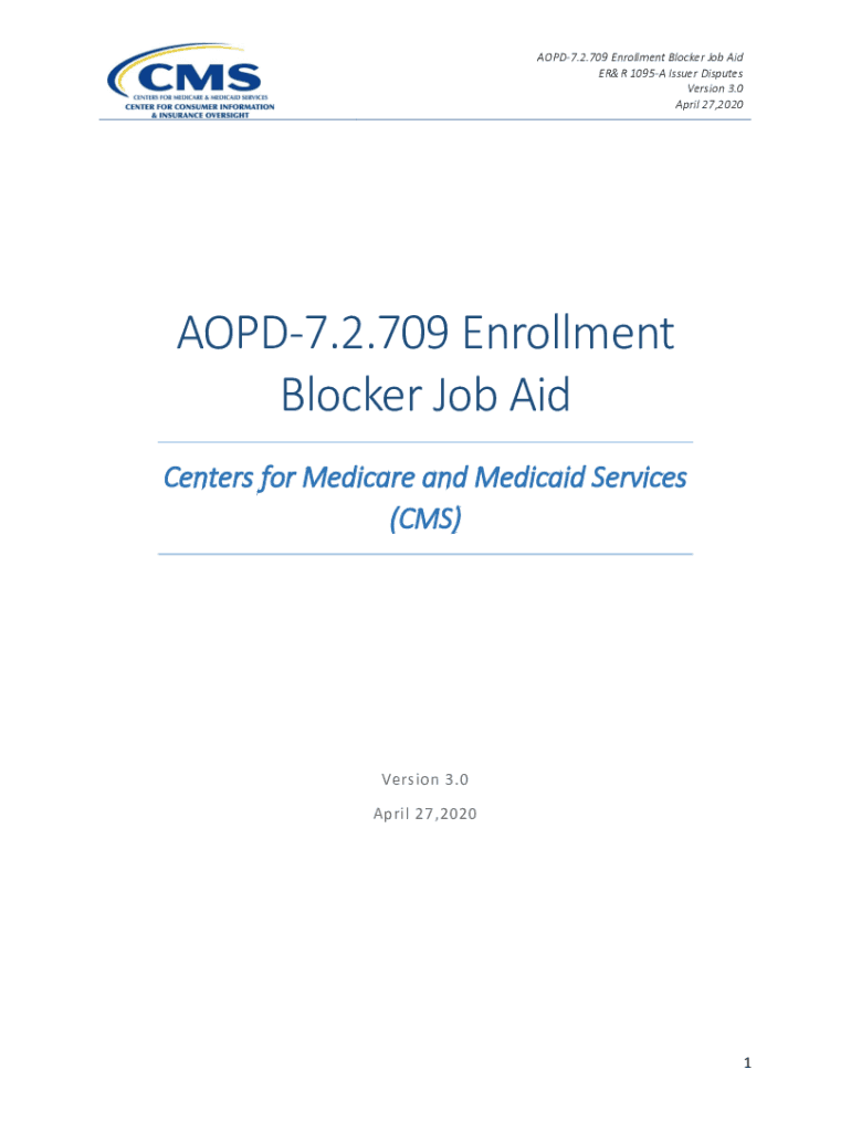 AOPD7.2.709 Enrollment Blocker Job Aid ERR 1095A Issuer Disputes Version 3.0 April 27,2020AOPD7.2.709 Enrollment Blocker Job Aid Centers for Medicare and Medicaid Services (CMS×Version 3.0 April