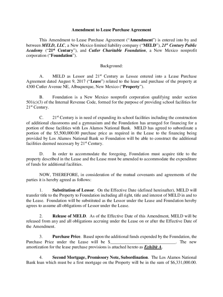 Get the free Amendment to Lease Purchase Agreement - 21st Century Public ...
