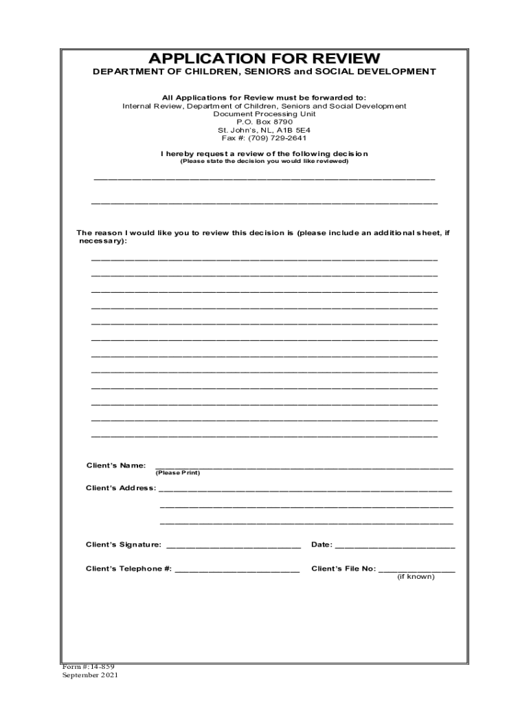 APPLICATION FOR REVIEWDEPARTMENT OF CHILDREN, SENIORS and SOCIAL DEVELOPMENT All Applications for Review must be forwarded to: Internal Review, Department of Children, Seniors and Social Development