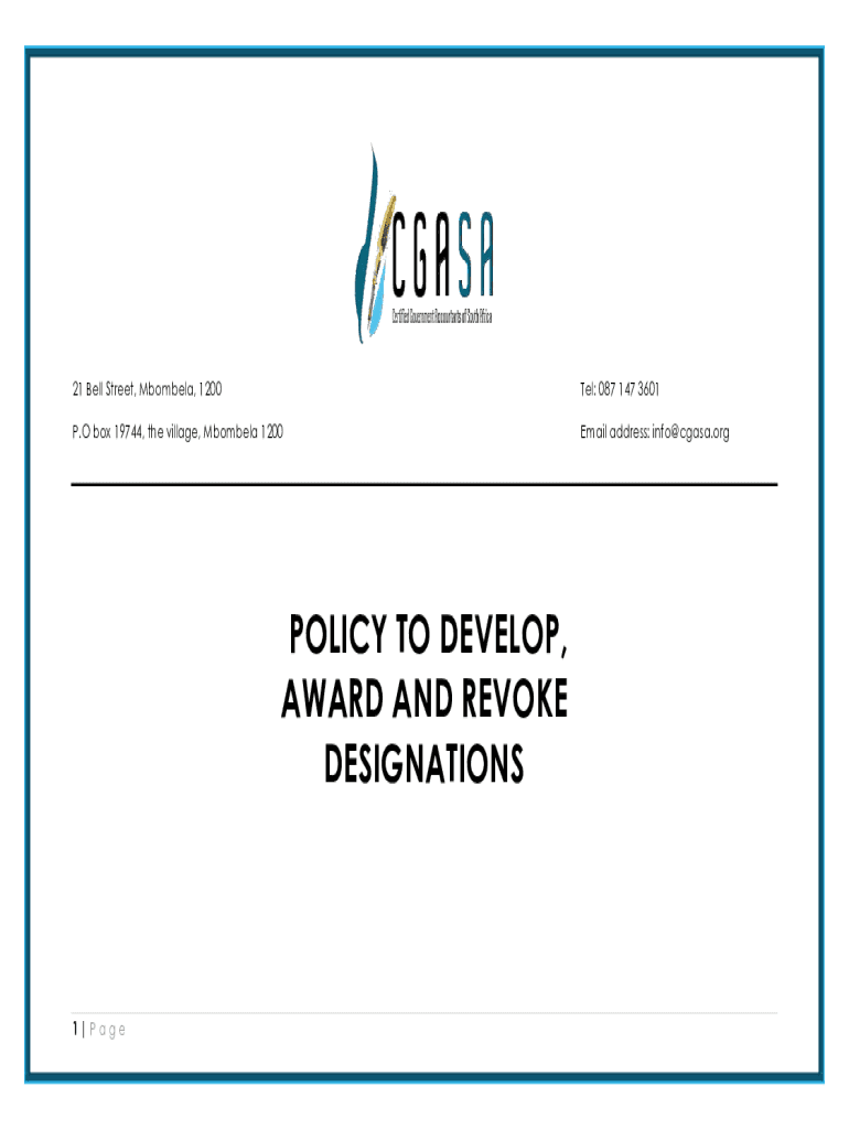 21 Bell Street, Bomber, 1200Tel: 087 147 3601P. O box 19744, the village, Bomber 1200Email address: info×CASA.policy TO DEVELOP, AWARD AND REVOKE DESIGNATIONS1×Reconfirmation OF CONSULTATION I declare