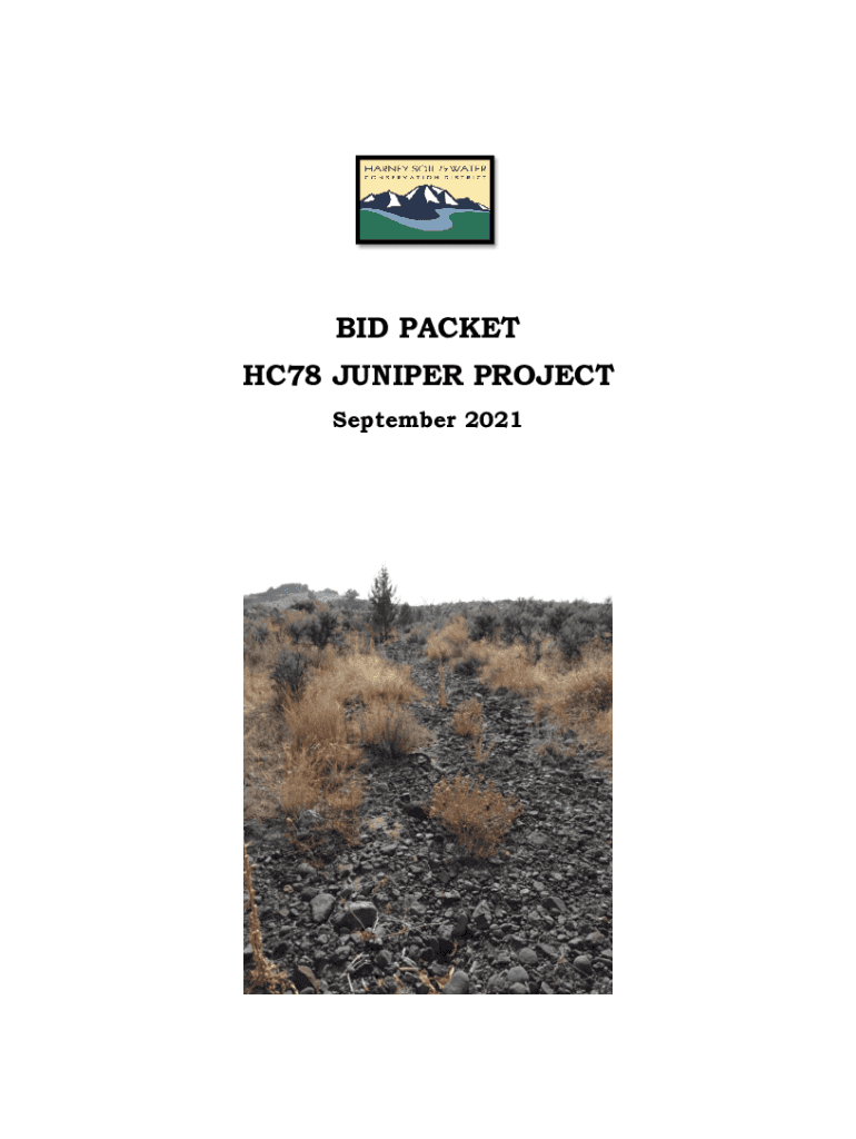 BID PACKET HC78 JUNIPER PROJECT September 2021HC78 JUNIPER PROJECT September 2021The HC78 juniper removal project is located approximately 46 miles from Burns, Oregon, in NE Harvey County. It consists