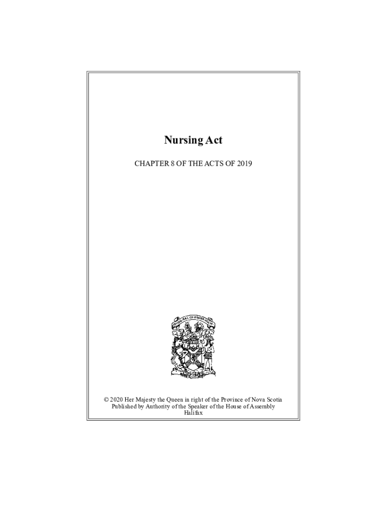 Nursing Act CHAPTER 8 OF THE ACTS OF 2019 2020 Her Majesty the Queen in right of the Province of Nova Scotia Published by Authority of the Speaker of the House of Assembly HalifaxThis page is intentionally