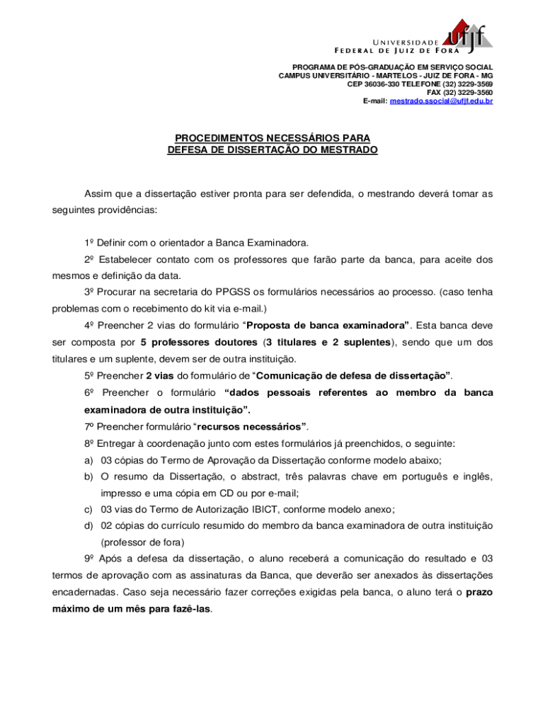 Get the free PROCEDIMENTOS NECESSRIOS PARA DEFESA DE