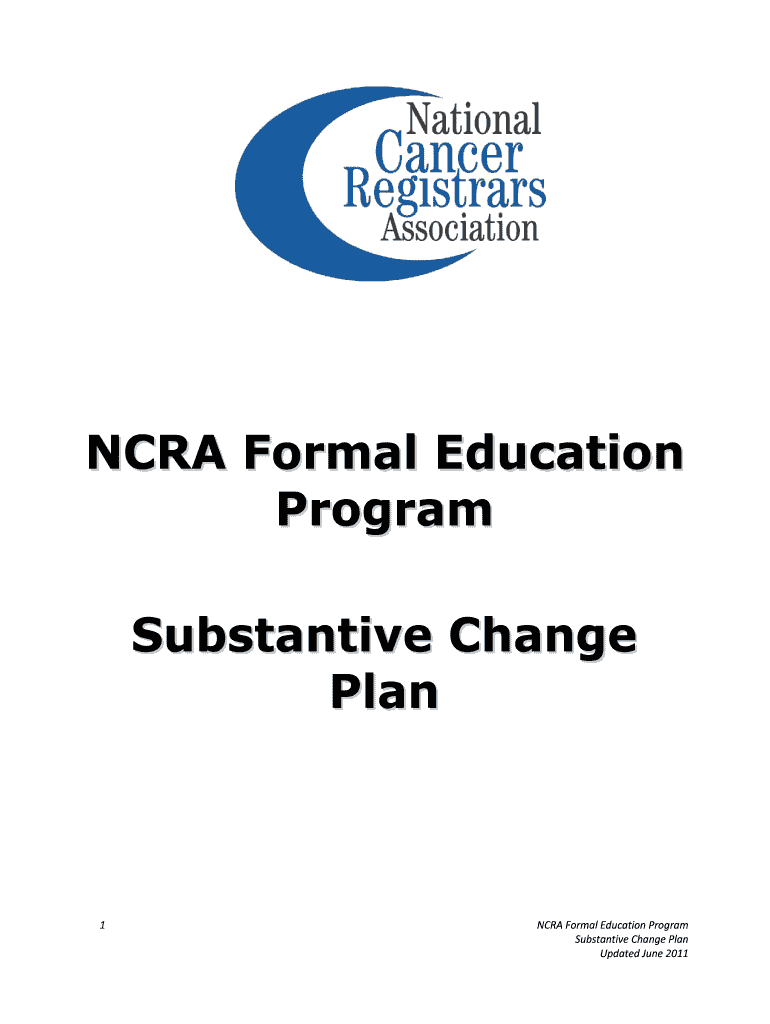 NCAA Formal Education Program Substantive Change Plan 1 NCAA Formal Education Program Substantive Change Plan Updated June 2011 NCAA Formal Education Programs Application for a Substantive Change