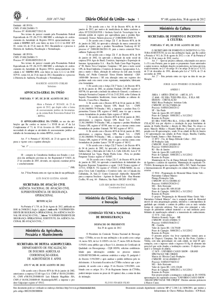 Obtenha o gratuito ISSN 1677-7042 - sistemasweb.agricultura.gov.