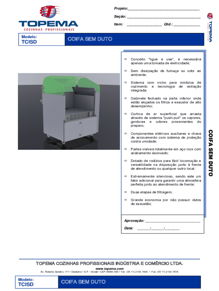Project:___ SEO: ___ Item:Model:TC ISD___ Ltd.: ___COIF ASEM DUTY Concerto life e use, necessary arenas UMA Omaha de eletricidade; SEM dissipate DE human of odor AO ambient; System com niche para