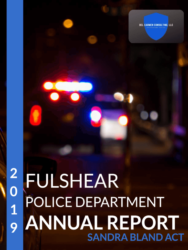2 FULCHER 0 POLICE DEPARTMENT 1 9 ANNUAL REPORTSANDRA BLAND ACT July 26, 2020Fulshear City Council P.O. Box 279, 29255 FM 1093, #7D Flashier, Texas 77441 Dear Distinguished Members of the City Council,