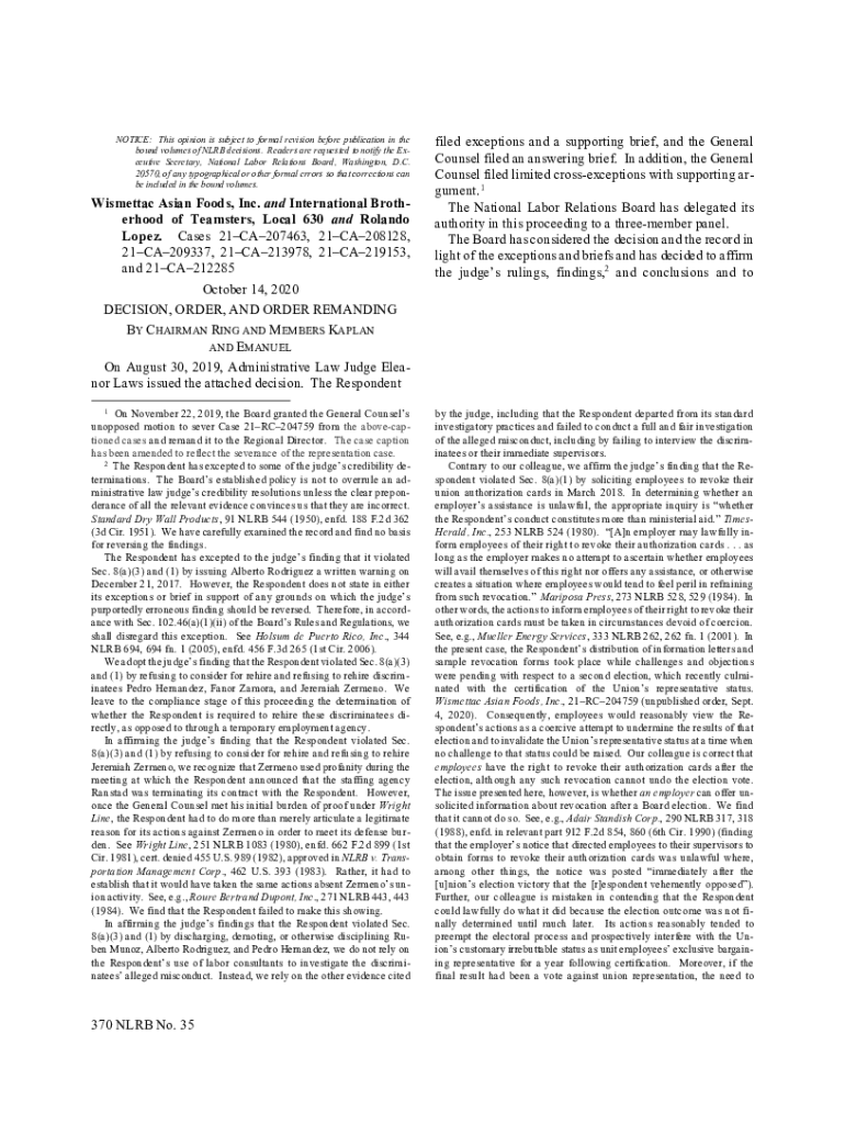 Get the free NOTICE: The Union excepts to the judges ... - apps.nlrb.gov