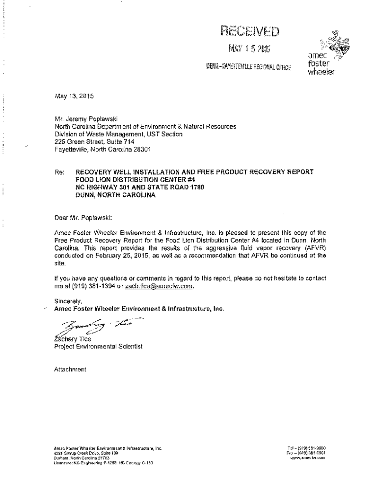 May 13, 2015Mr. Jeremy Polanski North Carolina Department of Environment & Natural Resources Division of Waste Management, MUST Section 225 Green Street, Suite 714 Fayetteville, North Carolina 28301Re:RECOVERY