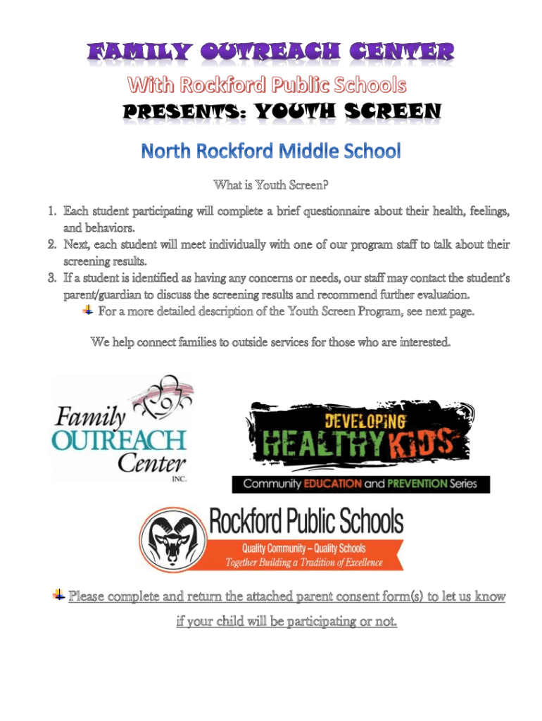 What is Youth Screen? 1. Each student participating will complete a brief questionnaire about their health, feelings, and behaviors. 2. Next, each student will meet individually with one of our program