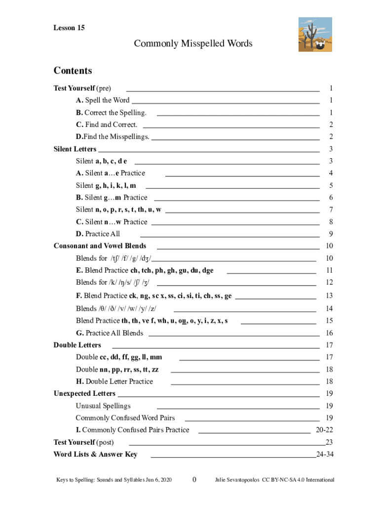 Lesson 15Commonly Misspelled Words Contents Test Yourself (PRE×1A. Spell the Word1B. Correct the Spelling.1C. Find and Correct.2D. Find the Misspellings.2Silent Letters3Silent a, b, c, d e3A. Silent
