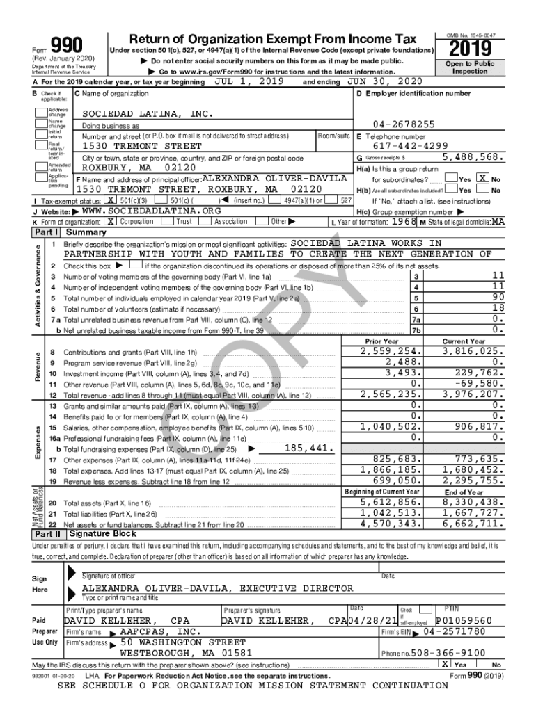 990OMB No. 15450047Return of Organization Exempt From Income Reinform (Rev. January 2020×2019Under section 501×c), 527, or 4947×a)(1) of the Internal Revenue Code (except private foundations) |