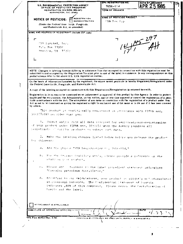 Get the free NOTICE OF PESTICIDE: !UGT'TOON o L - US EPA