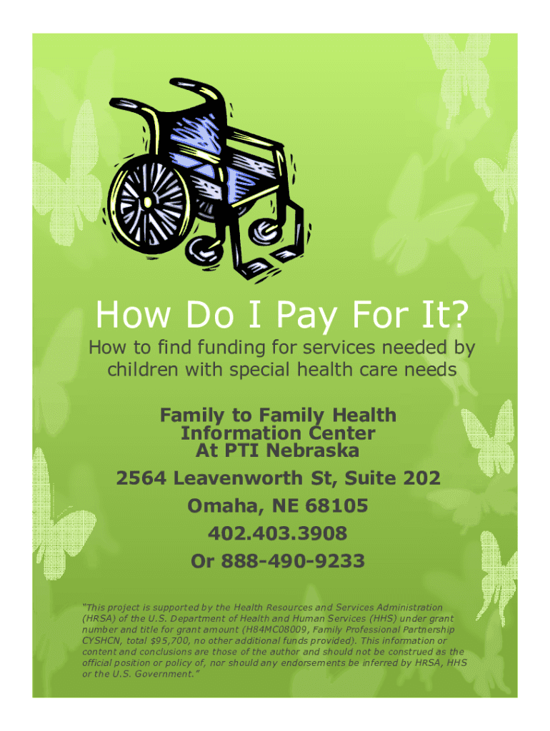 How Do I Pay For It? How to find funding for services needed by children with special health care needs Family to Family Health Information Center At PTI Nebraska 2564 Leavenworth St, Suite 202 Omaha,