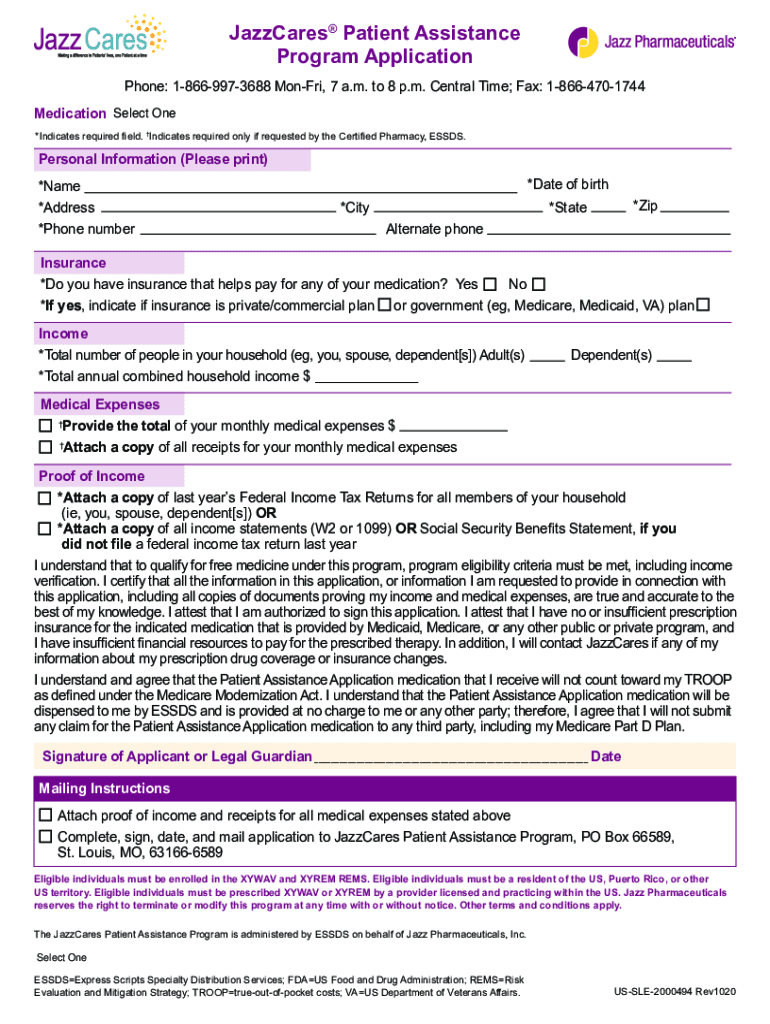 Patients who meet certain financial criteria are required to fill out the jazzcares patient assistance program.