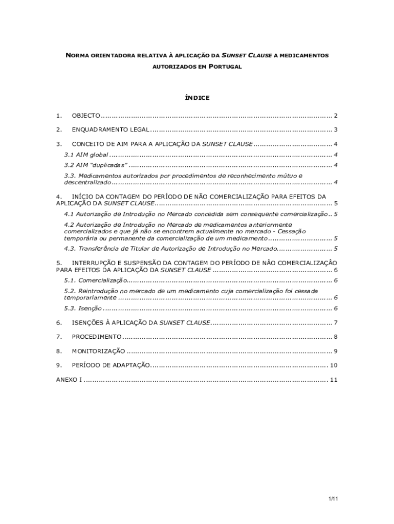 NORMA ORIENTADORA RELATIVE APICAL DA SUNSET CLAUSE A MEDICAMENT OS AUTORIZADOS EMPORTUGALNDICE 1.OBJECT ............................................................................................................