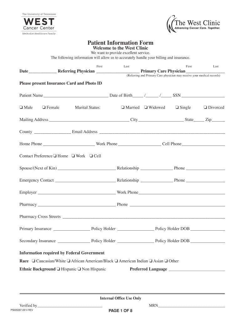 Get the free Patient Information Form - The West Clinic