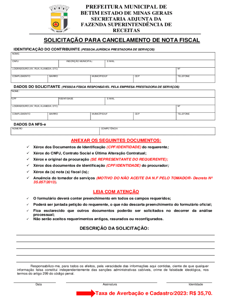 Preencher e assinar eletronicamente obtenha o gratuito nota agora é simples. A solução permite que você altere e reorganize o texto em PDF, adicione campos preenchíveis e assine eletronicamente o documento. Inicie uma avaliação gratuita do pdfFiller, a melhor solução para edição de documentos.