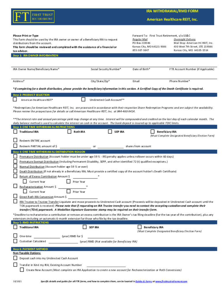 IRA WITHDRAWAL×RED FORM American Healthcare REIT, Inc. Please Print or Type This form should be used by the IRA owner or owner of a Beneficiary IRA to request distributions from the account. This