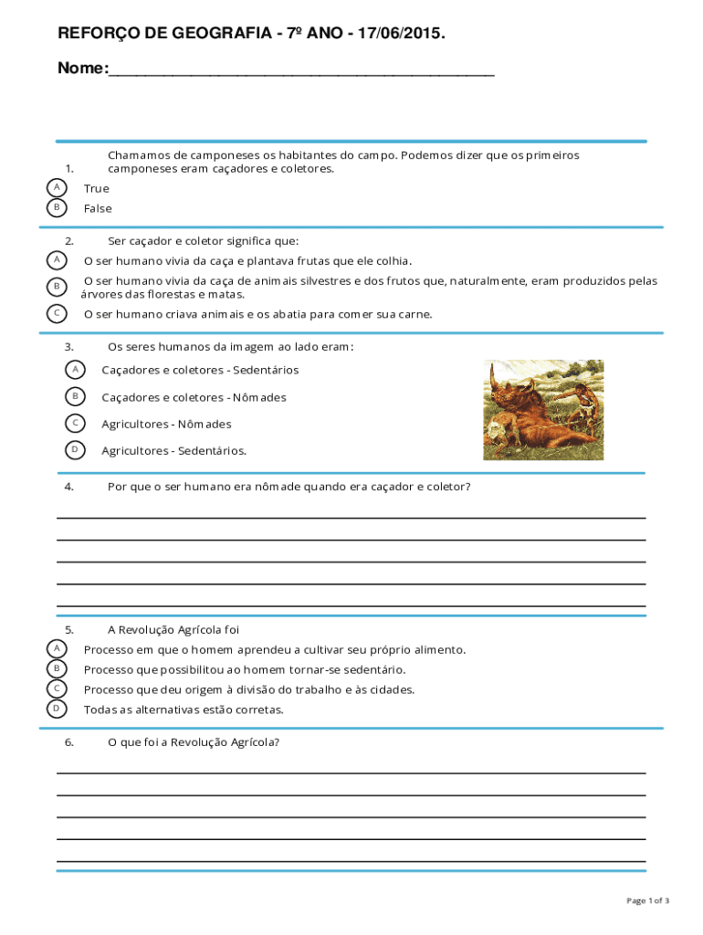 REFORM DE GEORGIA 7 ANO 17×06/2015. Nome:___ Name: ___Date: ___Quiz name: Reform 7 ANO: Capture 51. Champion DE components OS habitants do camp. Po demos diver Que OS primary components' era ca adores