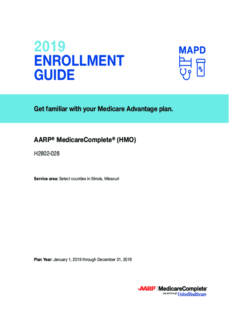 2019 ENROLLMENT GUIDE Get familiar with your Medicare Advantage plan. AARP MedicareComplete (HMO) H2802028 Service area: Select counties in Illinois, Missourian Year: January 1, 2019, through December