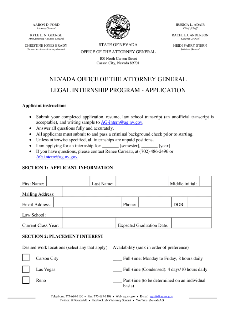 Get the free NEVADA OFFICE OF THE ATTORNEY GENERAL LEGAL ...