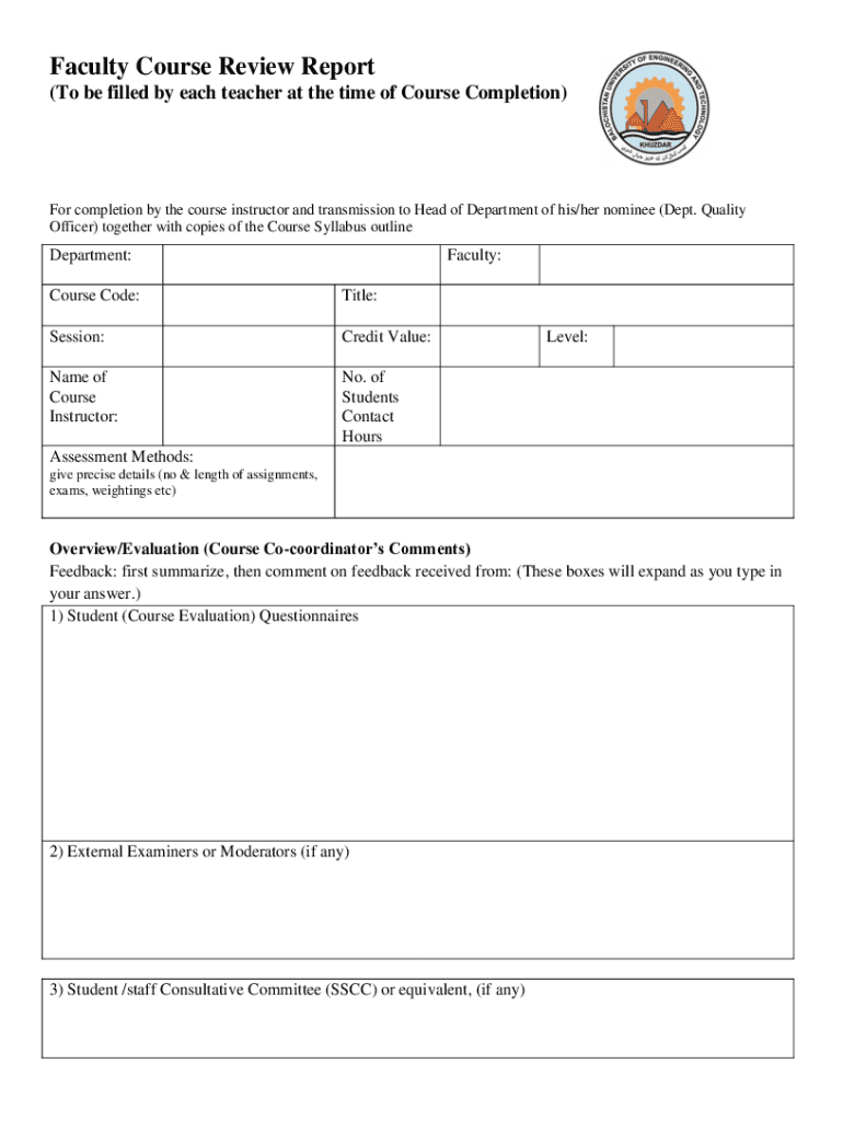 Get the free Faculty Course Review Report Proforma-TemplatePDF ... - buetk edu