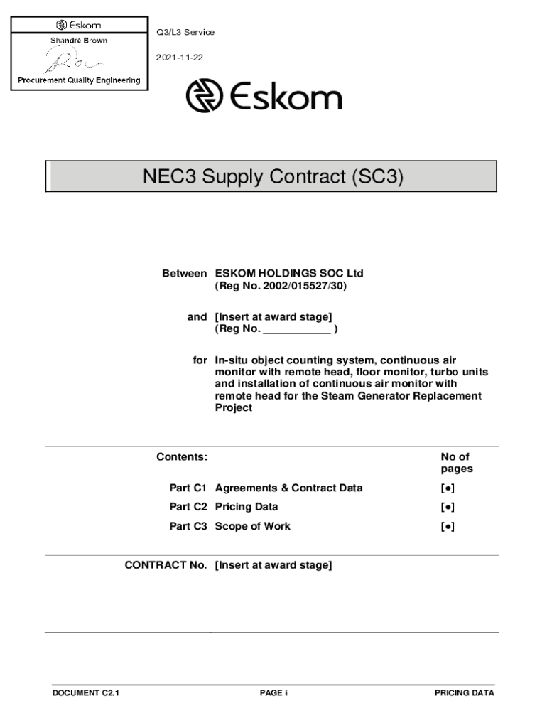 Get the free NEC3 Supply Contract (SC3) - etenders.gov.za