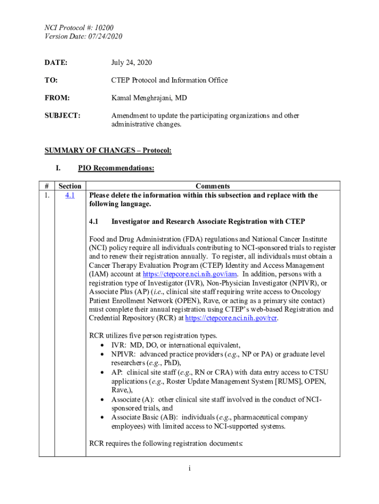 Get the free NCI Protocol #: 10200 Version Date: 07/24/2020 i DATE: July 24 ...