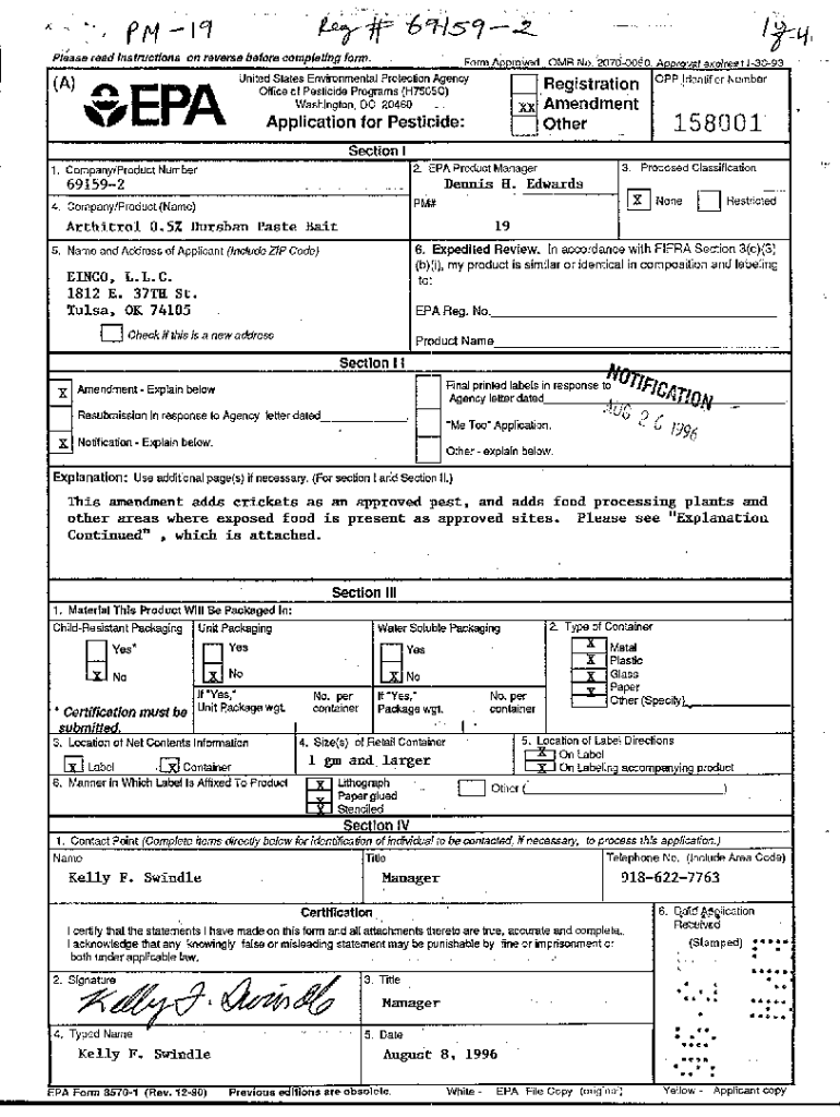 .\', fl\'111Please read Instructions on reverse before completing form×A)Form Approved. OMS No. 2070\')060. Approval entirely\'ll3D93 United States Environmental Protection Agency OPP identifier