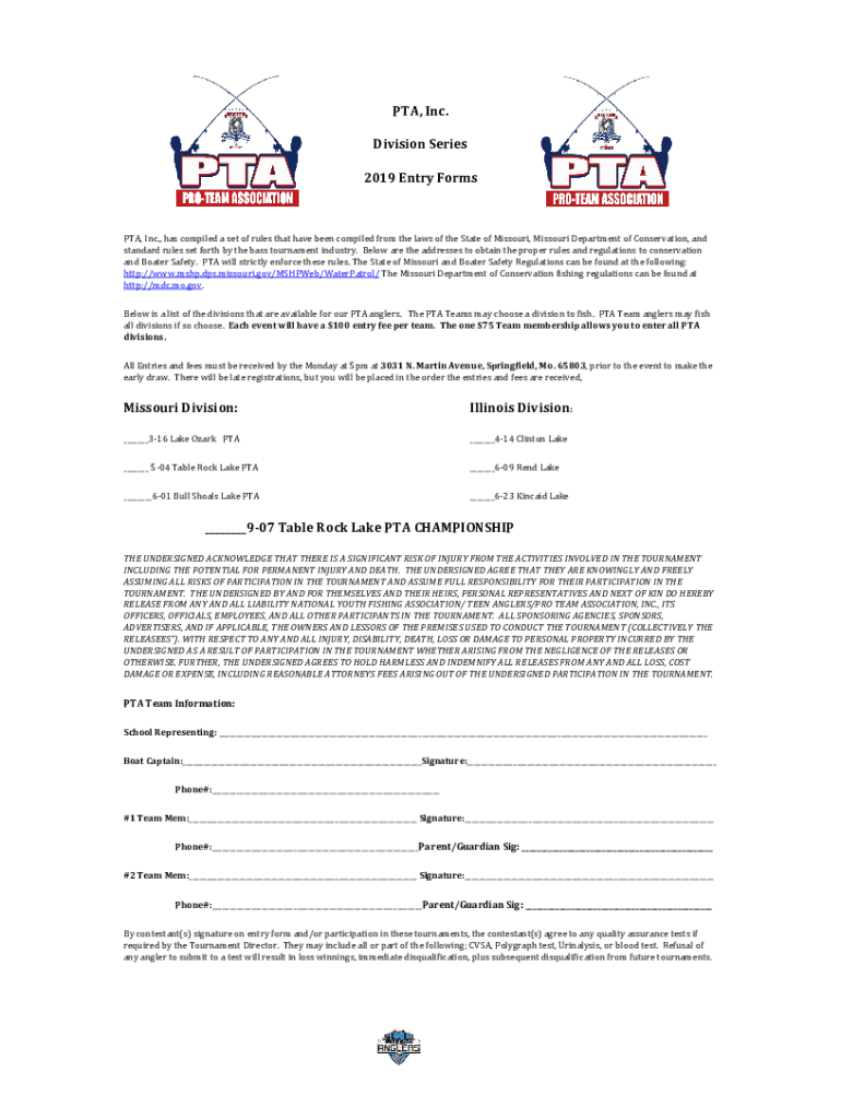 PTA, Inc. Division Series 2019 Entry Forms PTA, Inc., has compiled a set of rules that have been compiled from the laws of the State of Missouri, Missouri Department of Conservation, and standard
