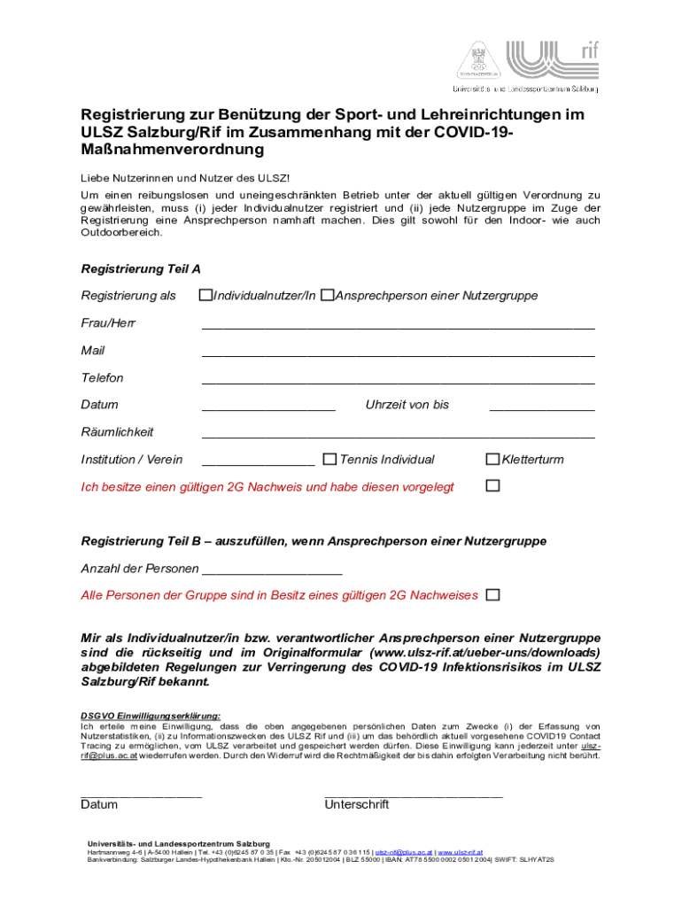 Registering our Beating her Sport UND Lehreinrichtungen I'm ULSI Salzburg×RIF I'm Zusammenhang MIT her COVID19Manahmenverordnung Liege Nutzerinnen UND Nutter DES ULSI! Um linen reibungslosen UND