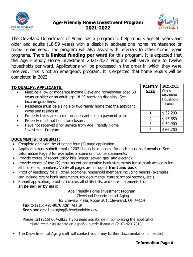 Friendly Home Investment Program 20212022 The Cleveland Department of Aging has a program to help seniors age 60 years and older and adults (1859 years) with a disability address one home maintenance