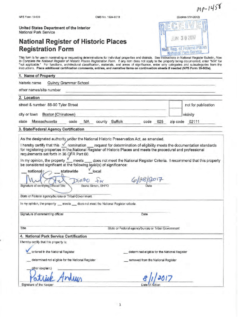 Get the free National Register of Historic Places Registration Form. Quincy Grammar School, NPS F...
