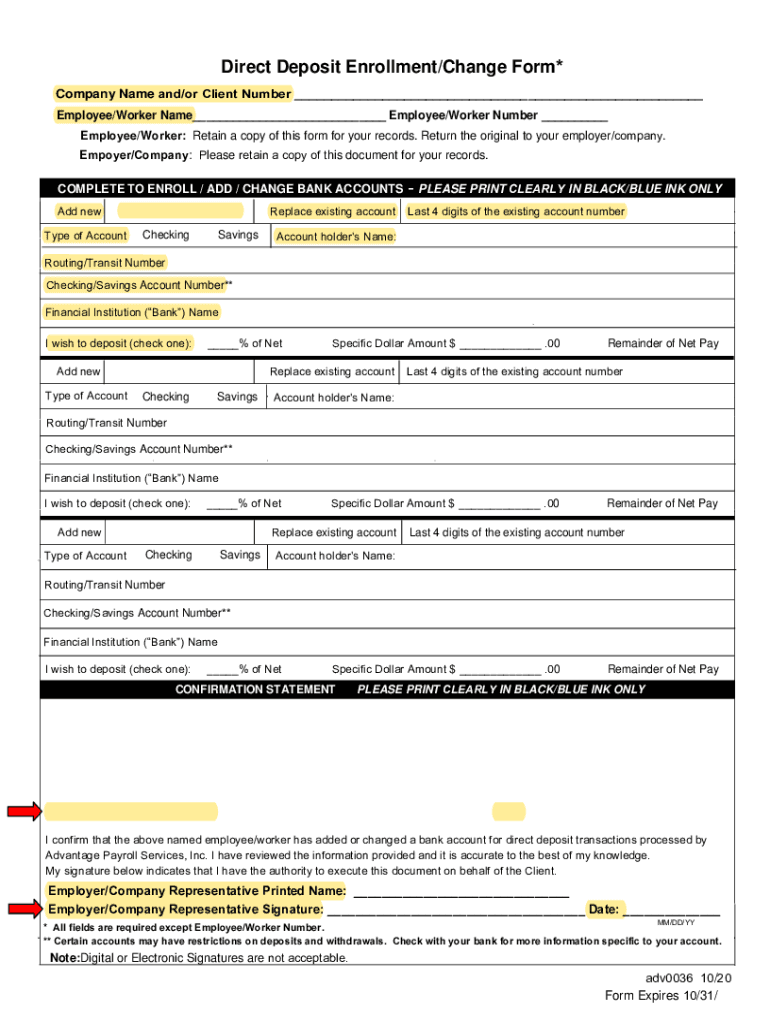 Get the free Advantage Payroll Services Direct Deposit Form