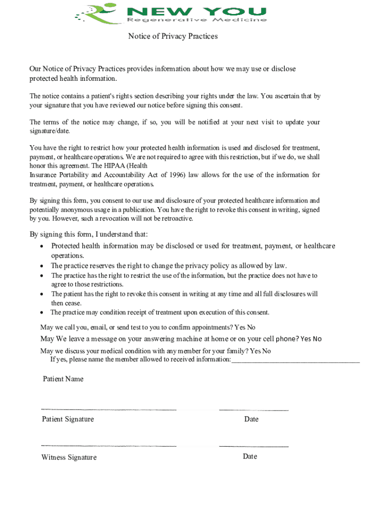 Review the completed Notice of Privacy Practices for accuracy and clarity.