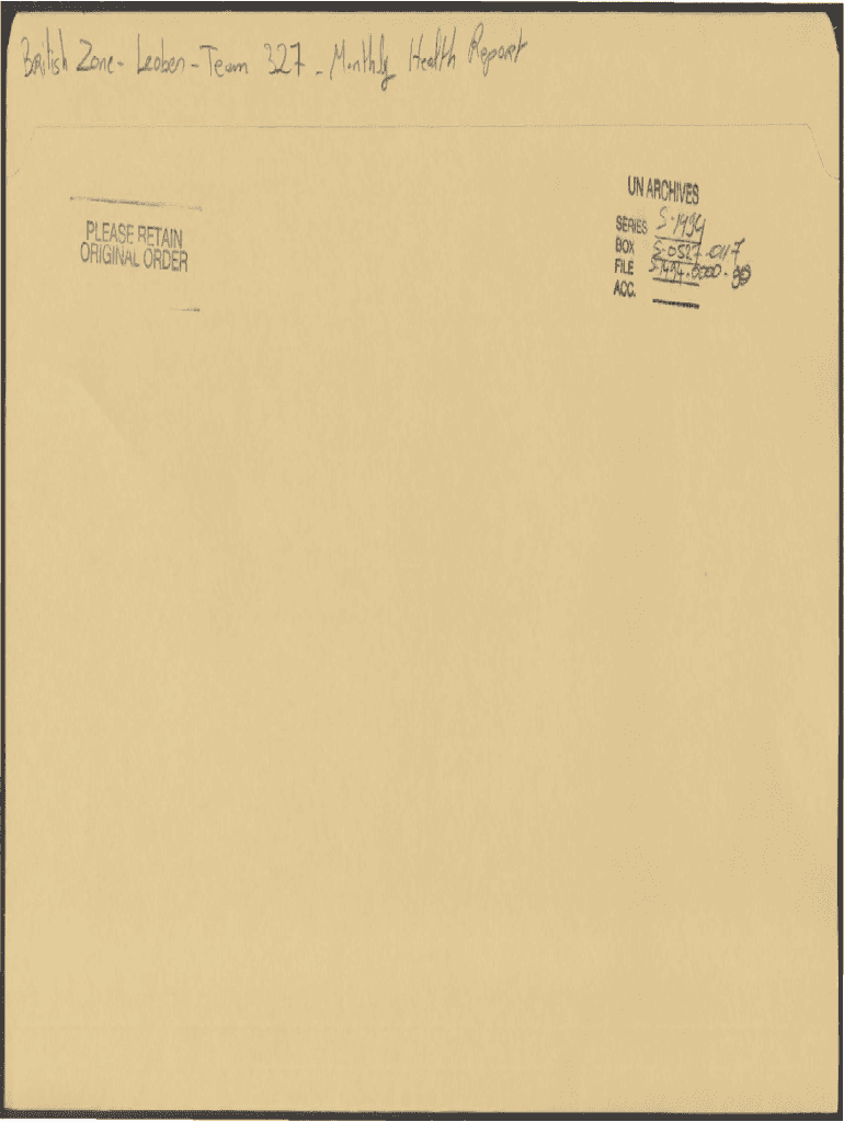 PLEASE RETAIN ORIGINAL ORDERBRITISH ZONE Team327 Leon opened November 1945Health Reports In file:30th November 1945 15th December February 1 946 March April May July August Se×pi;ember October November