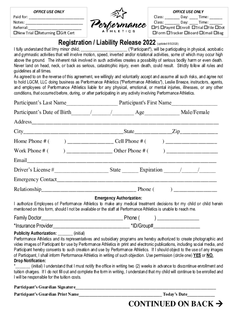 OFFICE USE ONLY Paid for: ___ Notes: ___ Referral:___ New Trial Returning Gift CertOFFICE USE ONLY Class: ___ Day: ___ Time: ___ Class: ___ Day: ___ Time: ___ PS Pay CT Enroll Trial File Dot Form