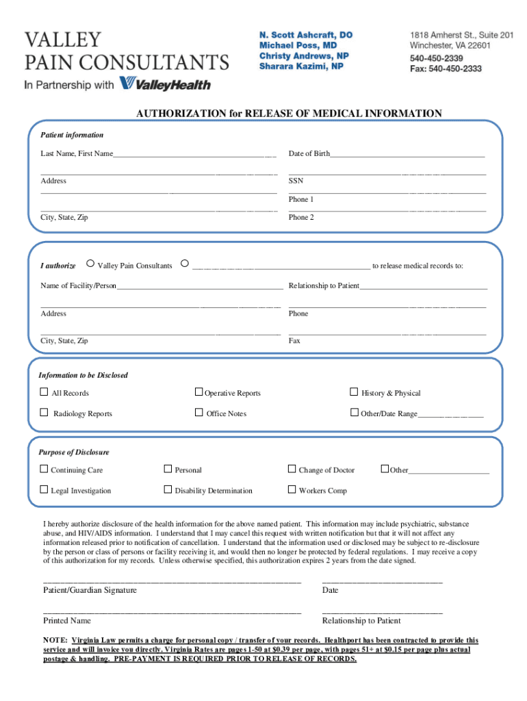 AUTHORIZATION for RELEASE OF MEDICAL INFORMATION Patient information Last Name, First Name___Date of Birth______ Address ______ SSN ___ Phone 1 ___ ___ City, State, Zip Phone 2 ___ ___I authorize