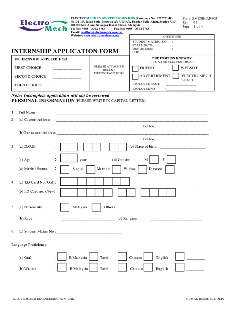Get the free Note: Incomplete application will not ... - electromech.com.my
