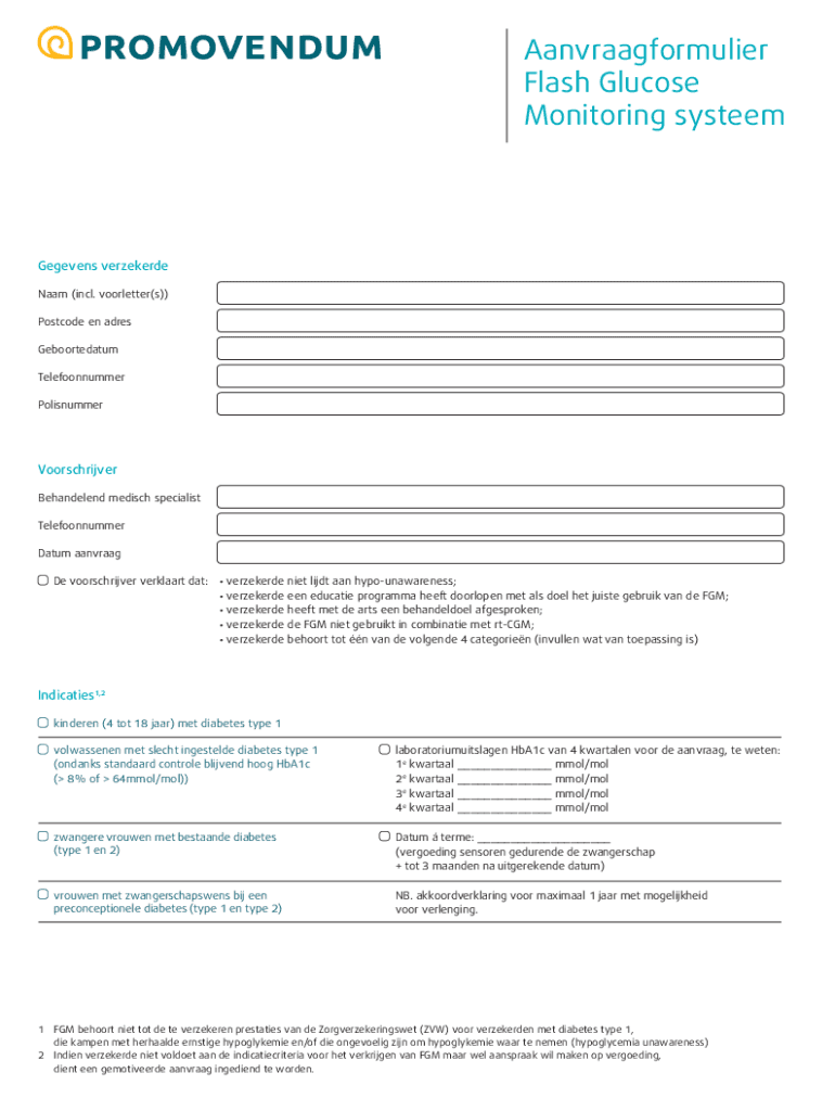 Aanvraagformulier Flash Glucose Monitoring systeemGegevens verzekerde Nam (incl. newsletter’s)) Postcode en acres Geboortedatum Telefoonnummer PolisnummerVoorschrijver Rehandled Medici specialist