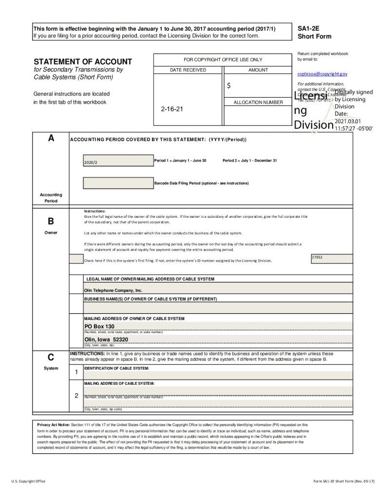 This form is effective beginning with the January 1 to June 30, 2017, accounting period (2017×1) If you are filing for a prior accounting period, contact the Licensing Division for the correct form.