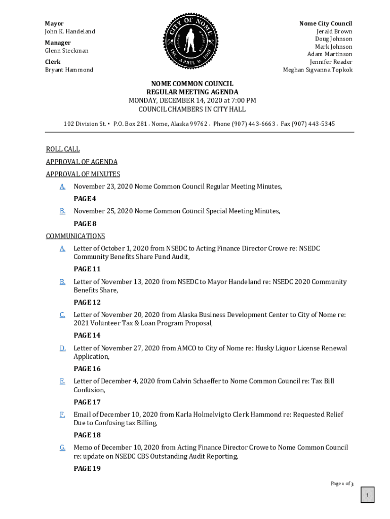 Get the free Nome City Council Jerald Brown Doug Johnson Mark Johnson ...