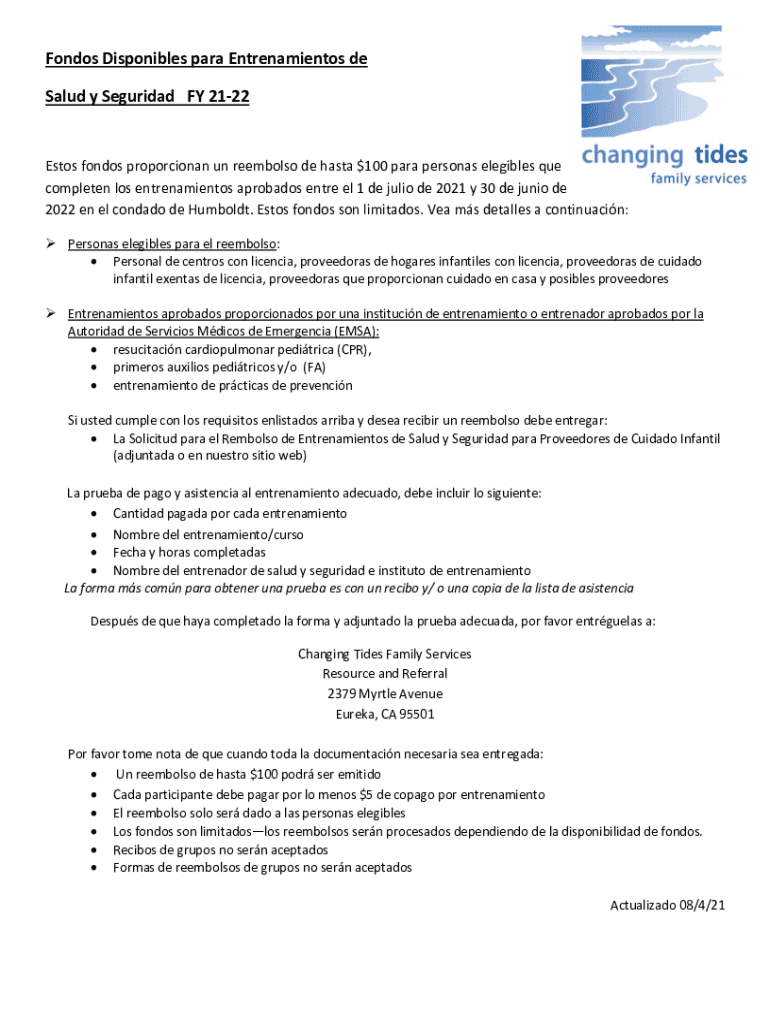 Condos Disposables para Entrenamientos de Salud y Sciuridae FY 2122Estos condos proportional UN reembody DE pasta $100 para personas eligible Que completed Los entrenamientos Barbados entr eel 1 de