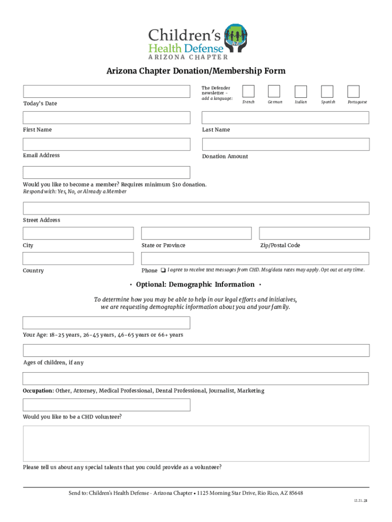 Who needs donationmembership form - apichildrenshealthdefenseorg?