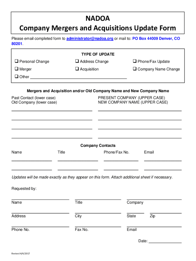 Companies that are undergoing a merger or acquisition are required to file NADOA company mergers and.